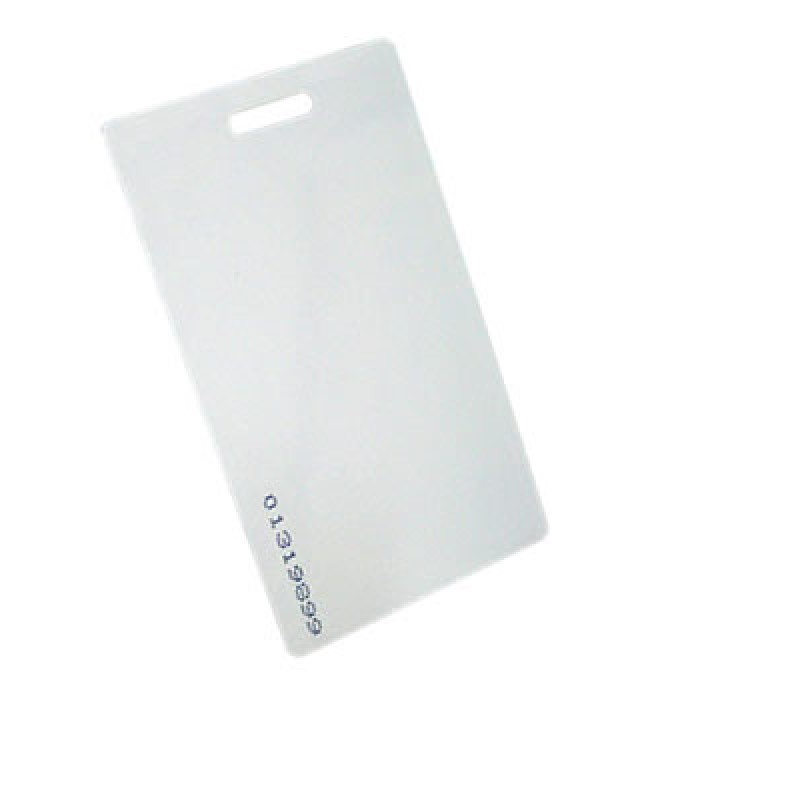 This ISO standard proximity card is 0.75mm thick and can have printed material attached to the front. It is supplied with a pre-assigned unique code.